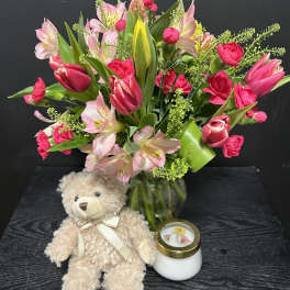 Price: $169.99 6in Sienna Glass Hand Blown Ornament with fresh Flowers Product Tags: Next-day Delivery